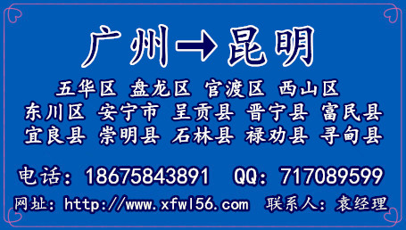廣州到云南昆明市物流廣州鑫富物流有限公司,電話:020-87461290 ,手機:18675843891 ,QQ:717089599 聯(lián)系人:袁經(jīng)理,為廣大新老客戶提供優(yōu)質(zhì)廣州到云南昆明市物流專線及配送服務(wù),歡迎來電咨詢,鑫富物流公司在珠三角的深圳、佛山、珠海、東莞、中山、惠州、江門、肇慶都可以上門提貨,貨到云南昆明市可以送貨到各鄉(xiāng)鎮(zhèn)及偏遠地區(qū),讓客戶方便收貨,鑫富國家AAA物流企業(yè)–貨運一站式解決方案。